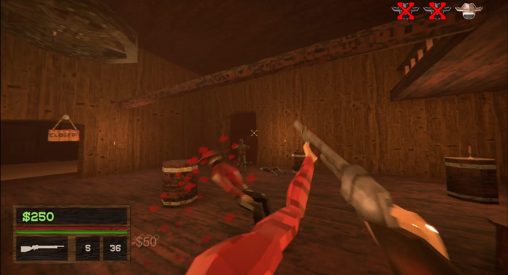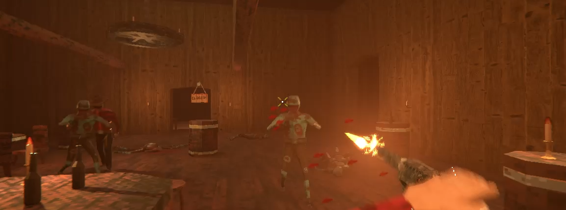 A round-based zombie shooter set in the wild-west. Blast your way through endless waves of undead and serve your (very brave) customers beer to collect their sweet, sweet cash money.